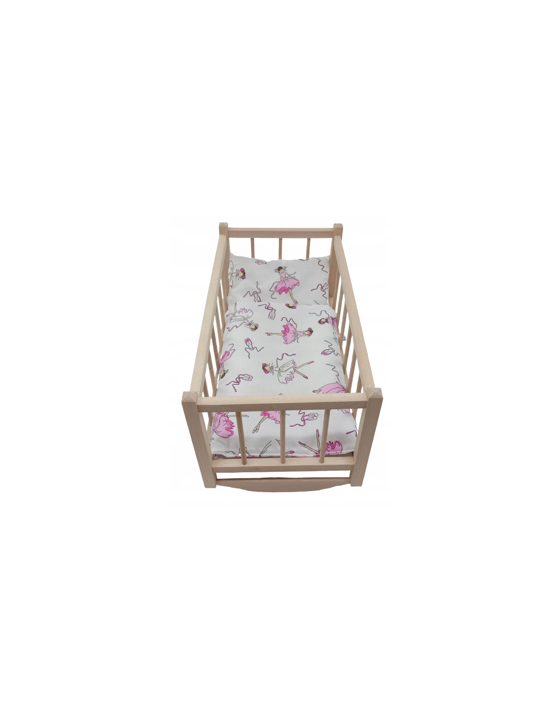 KOŁYSKA dla lalek drewniana + pościel 3 ELEMENTY