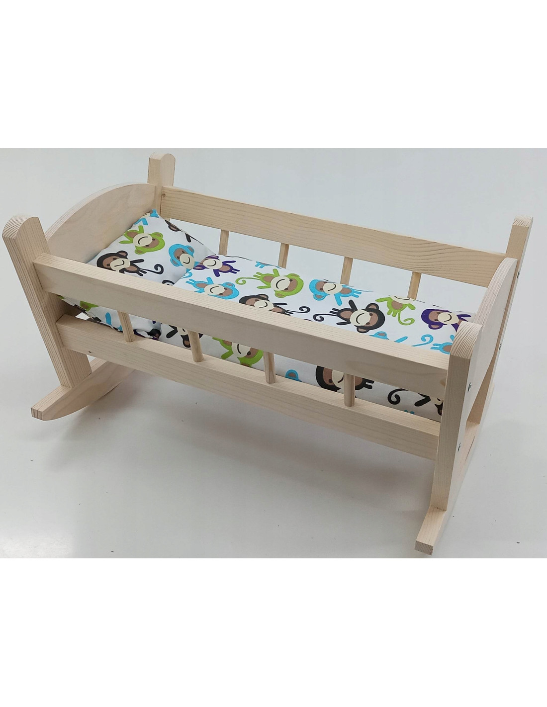 KOŁYSKA DREWNIANA dla lalek NIEMALOWANA + POŚCIEL