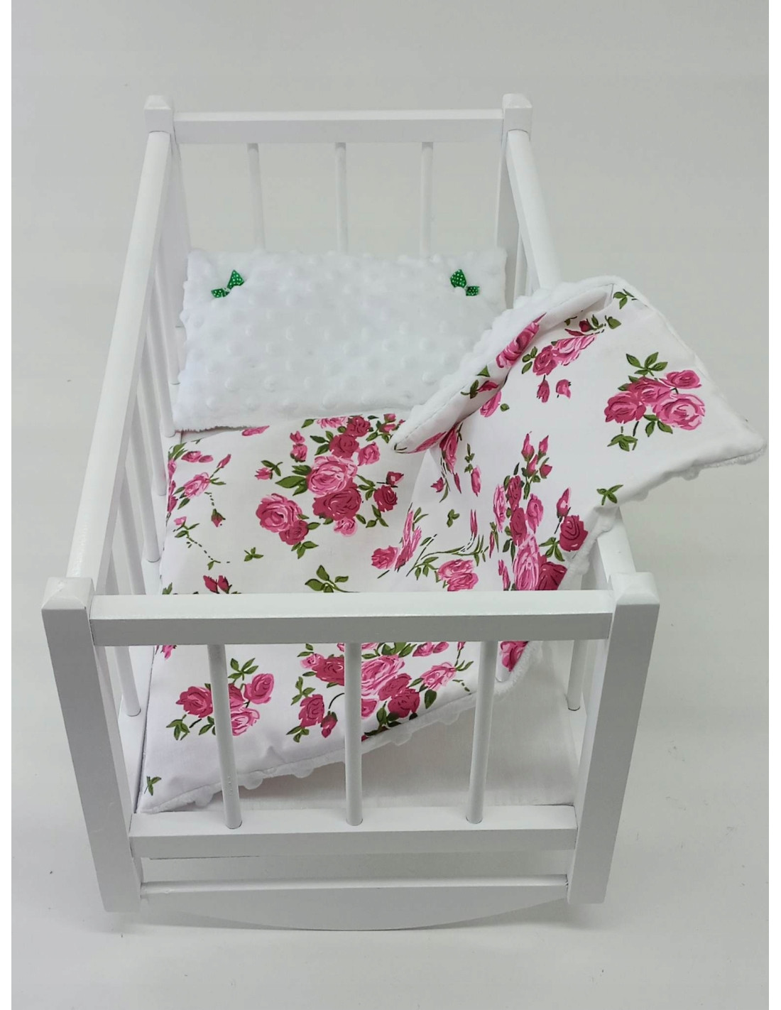 KOŁYSKA DREWNIANA BIAŁA dla lalek POŚCIEL MATERAC