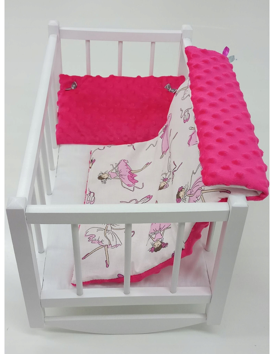 KOŁYSKA DREWNIANA BIAŁA dla lalek POŚCIEL MATERAC