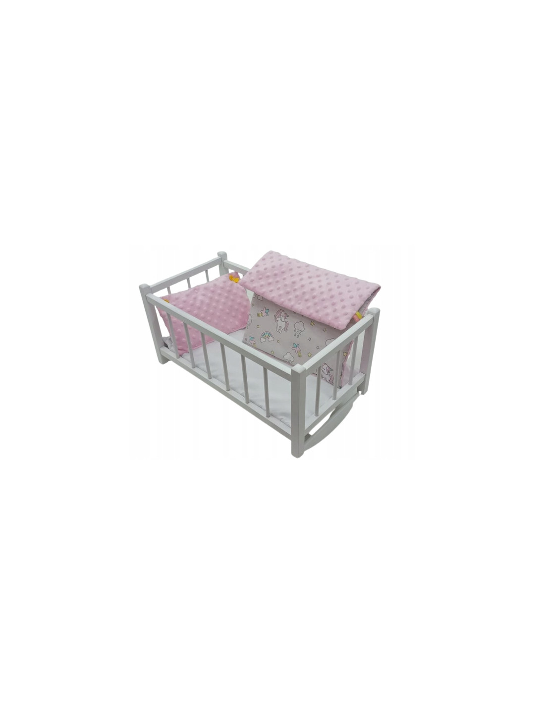 KOŁYSKA dla lalek BIAŁA+ pościel MINKY + BAWEŁNA
