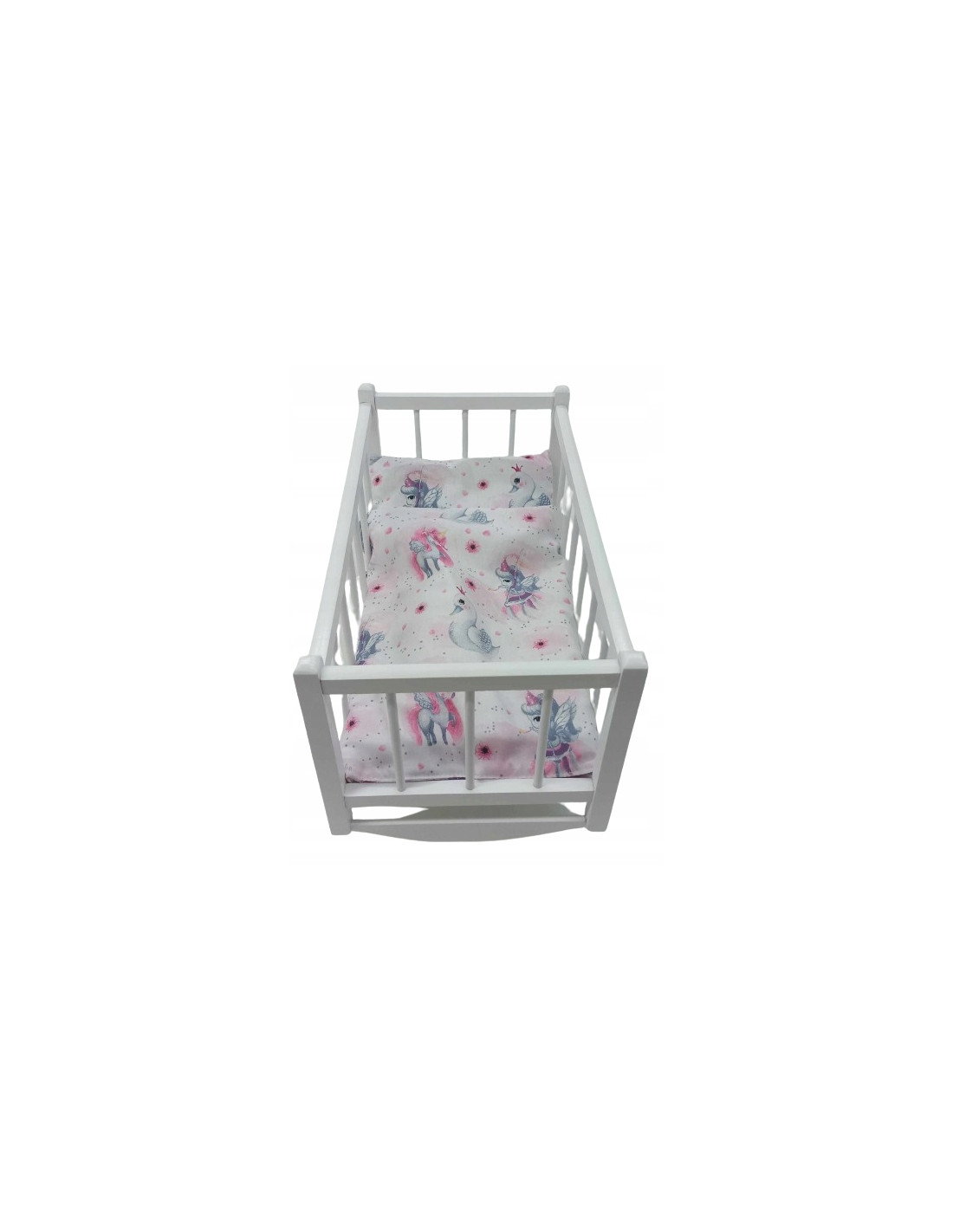 KOŁYSKA DLA LALEK BIAŁA DREWNIANA + POŚCIEL 3el