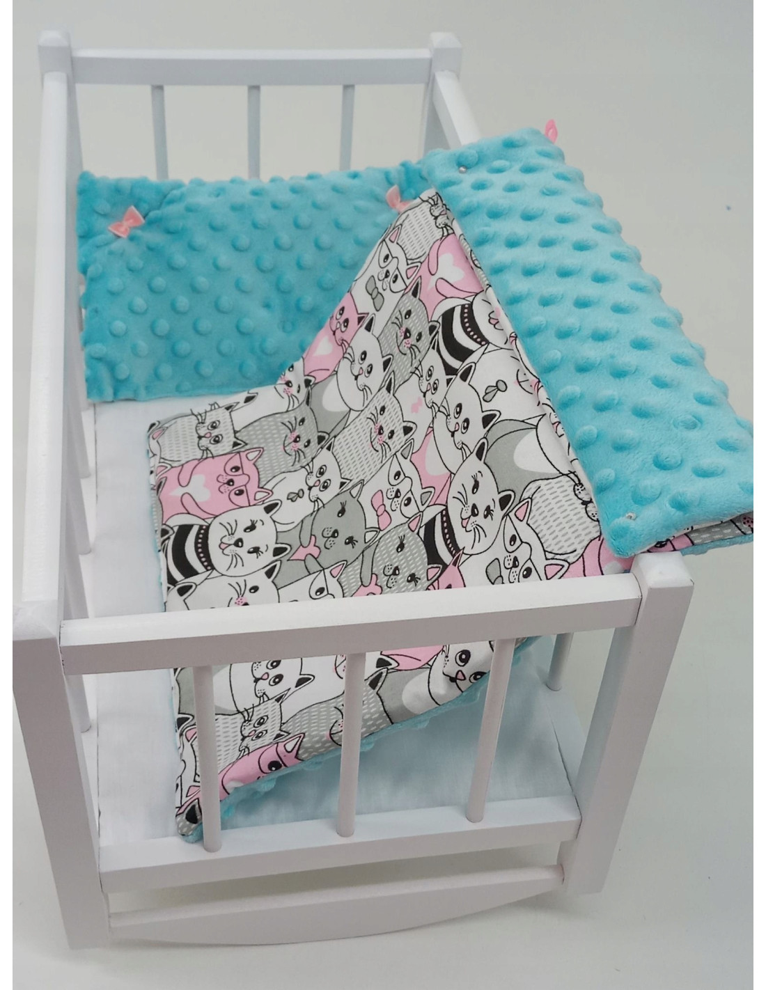 KOŁYSKA DREWNIANA BIAŁA dla lalek POŚCIEL MATERAC