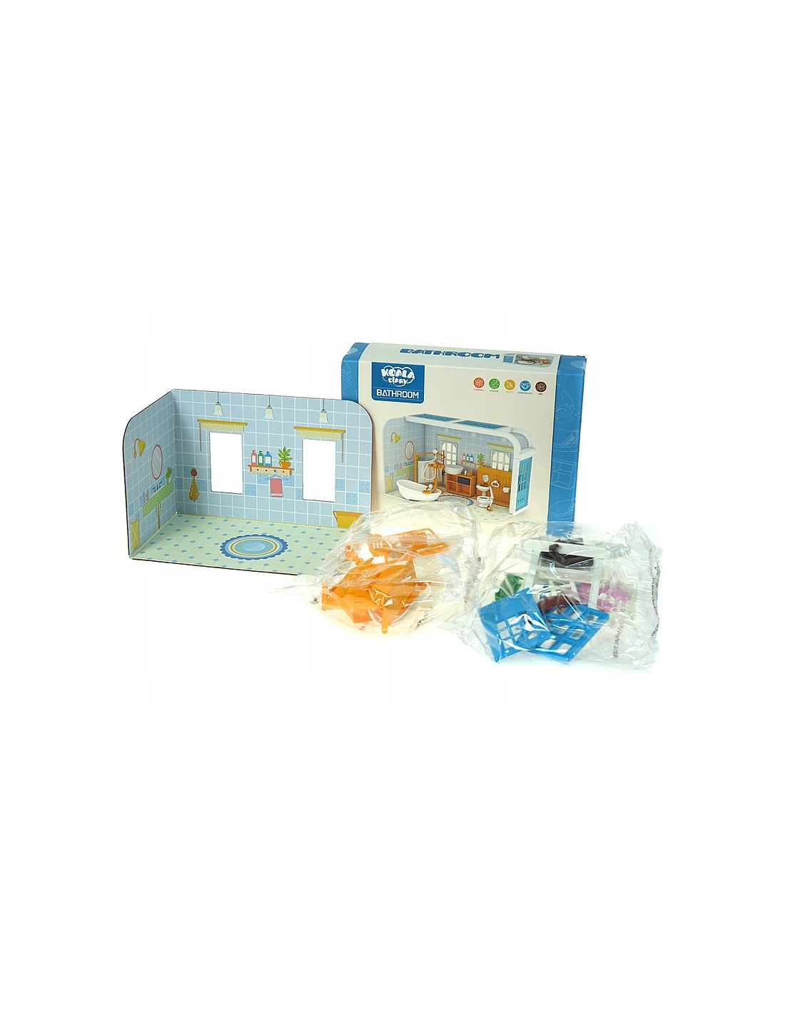 Zestaw mebelków do domku dla lalek - Łazienka to nieodzowny element kolekcji każdej małej miłośniczki zabawek. Pozwala na urządzanie wymarzonego wnętrza lalkowego domku, ćwicząc jednocześnie sztukę dekoracji i organizacji przestrzeni.