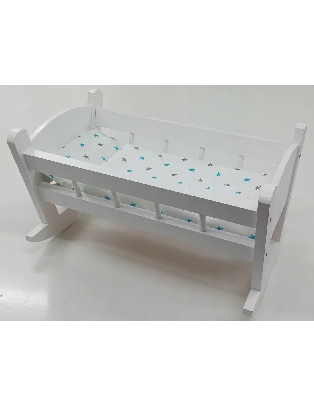 KOŁYSKA DLA LALEK BIAŁA + POŚCIEL Z MATERACEM