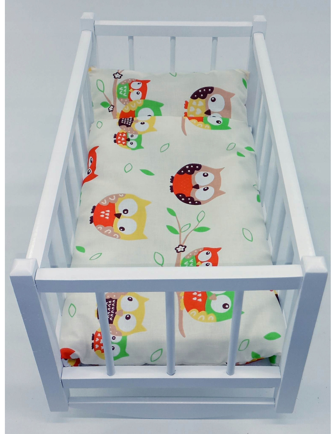 KOŁYSKA DLA LALEK BIAŁA DREWNIANA + POŚCIEL 3el