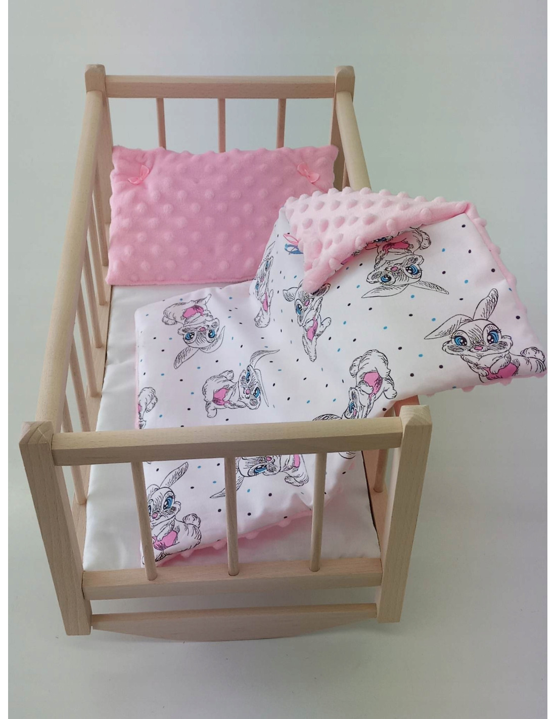 DREWNIANA KOŁYSKA DLA LALEK ORAZ POŚCIEL MINKY+ BAWEŁNA