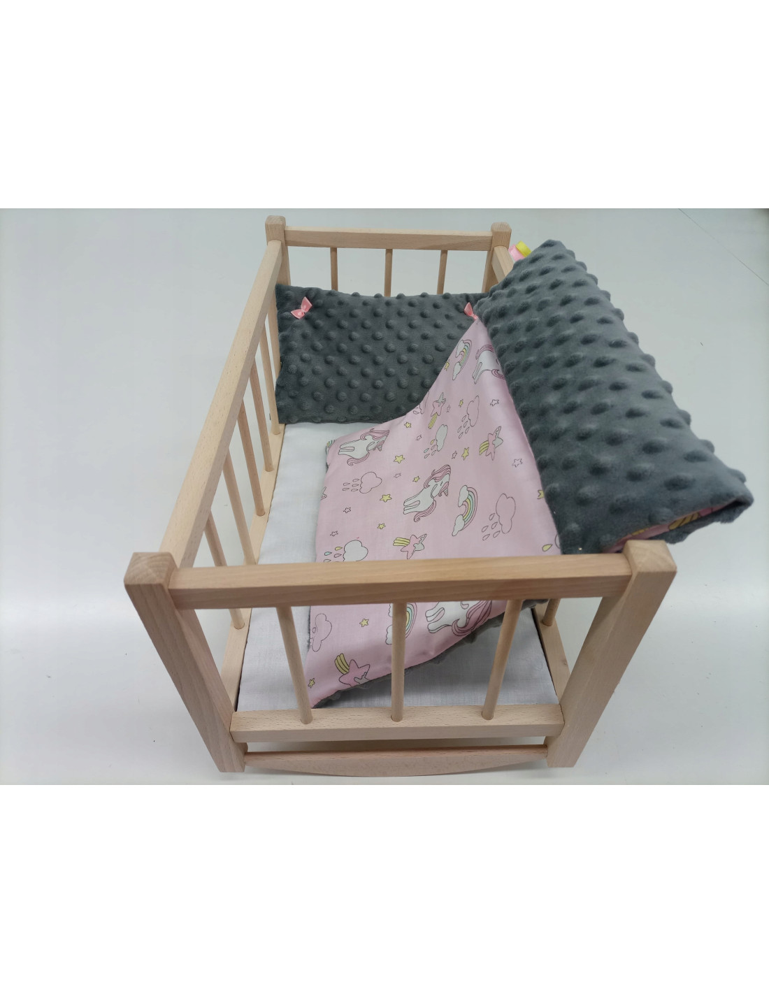 DREWNIANA KOŁYSKA DLA LALEK ORAZ POŚCIEL MINKY+ BAWEŁNA