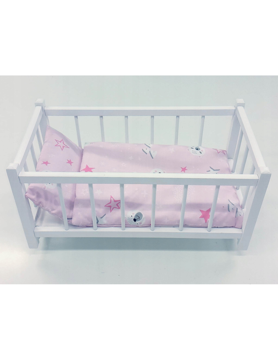 BIAŁE DREWNIANE ŁÓŻECZKO DLA LALEK + POŚCIEL 3EL