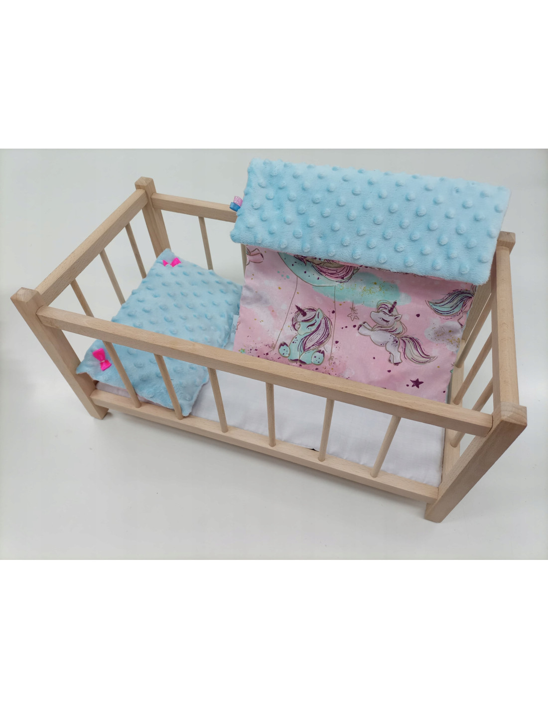 DREWNIANE ŁÓŻECZKO NATURALNE dla lalek + POŚCIEL