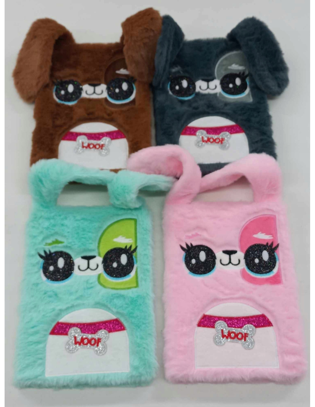 NOTES - PAMIĘTNIK okładka z miękkiego futerka z haftowanym motywem pieska