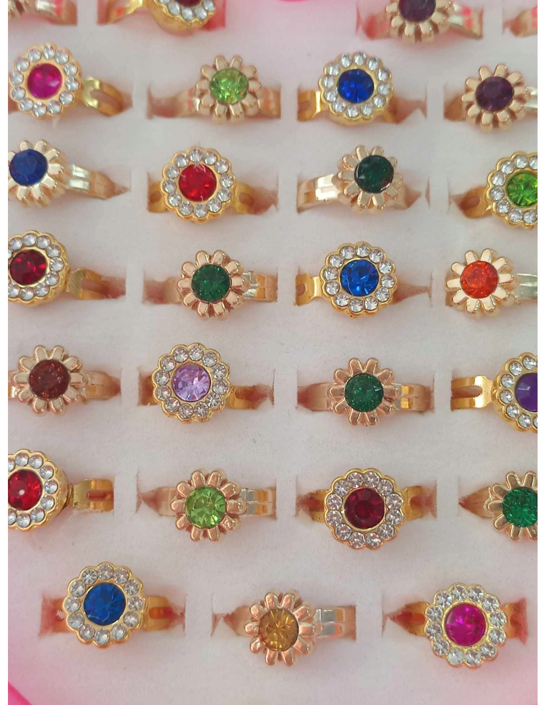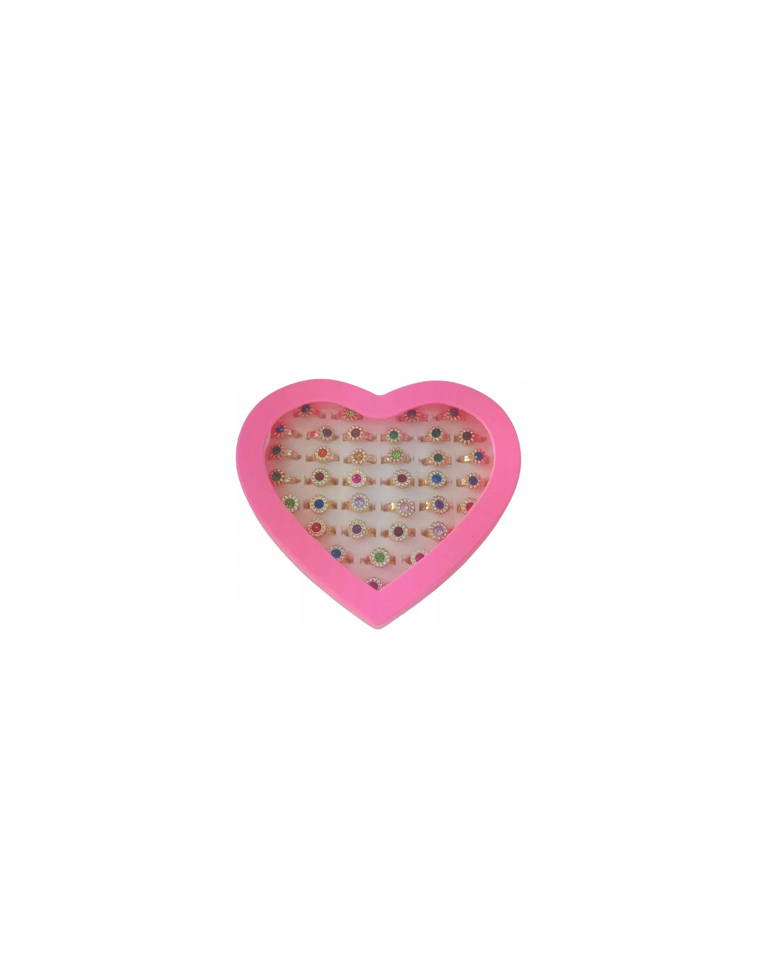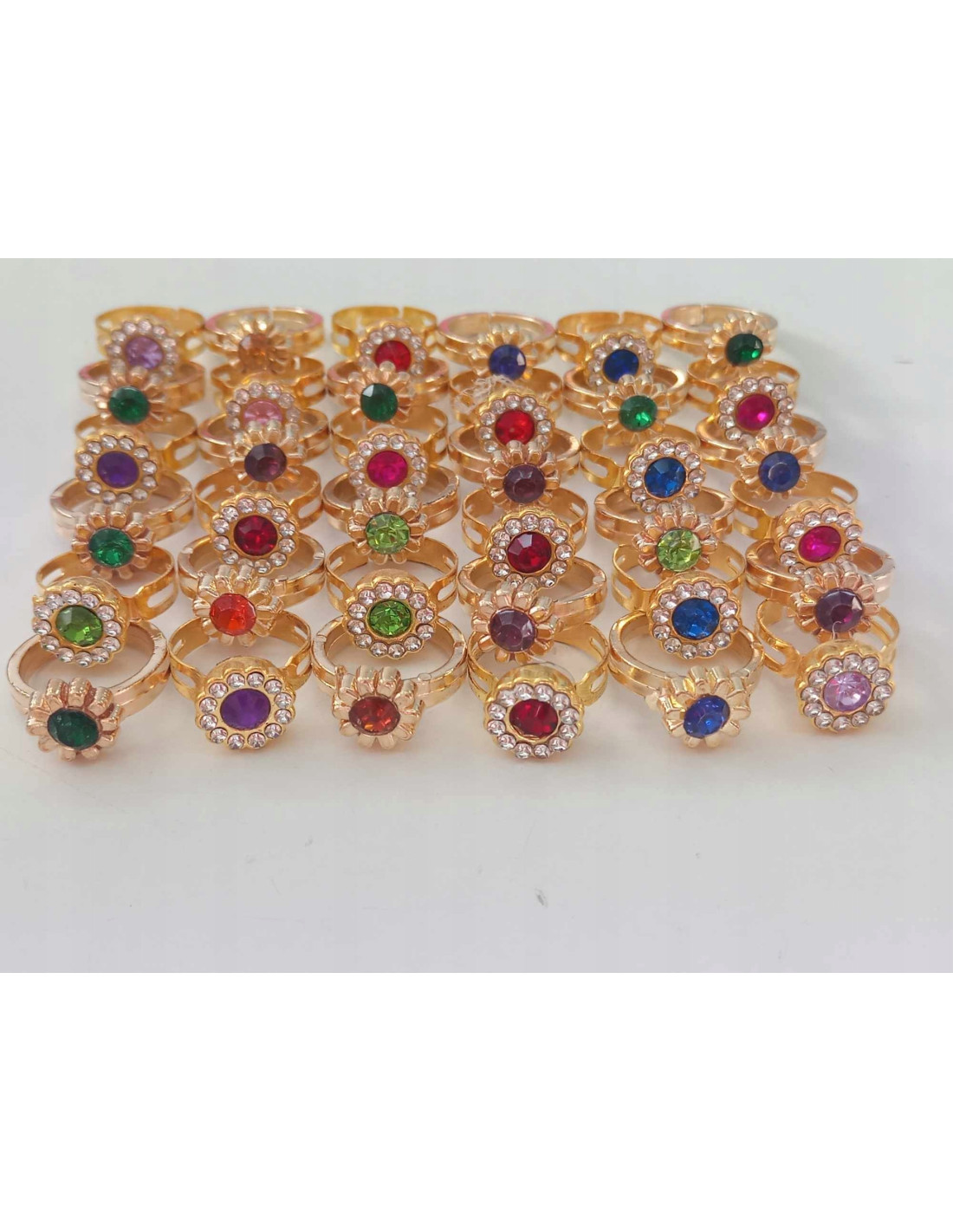 Zestaw 36 pierścionków z błyszczącymi kolorowymi oczkami, zachwyci małą damę. Każda dziewczynka pokocha ten zestaw.