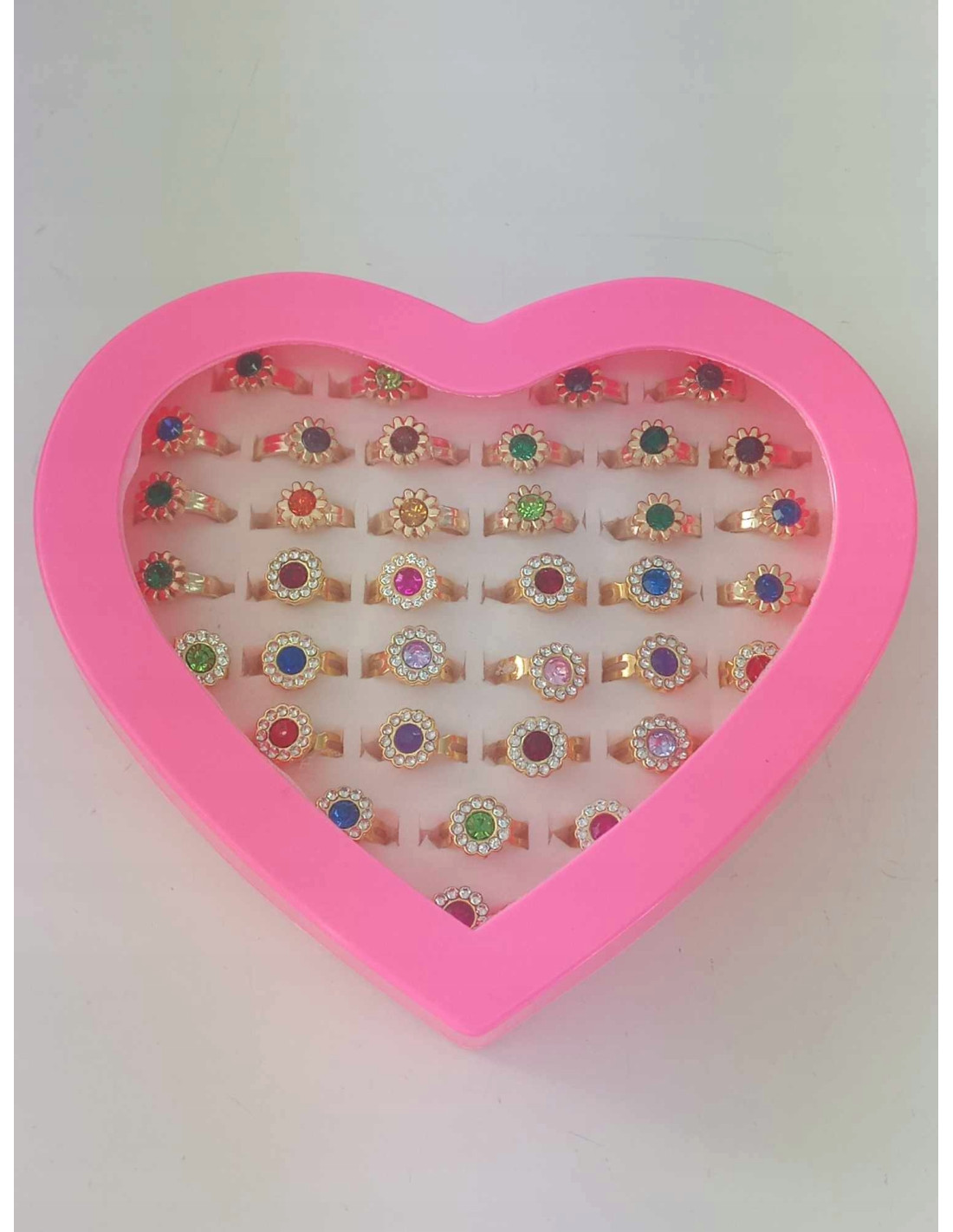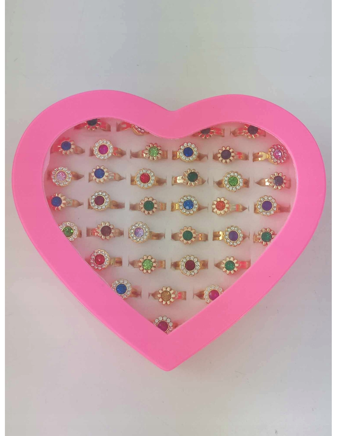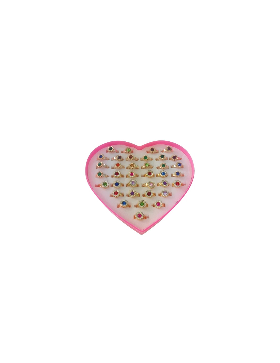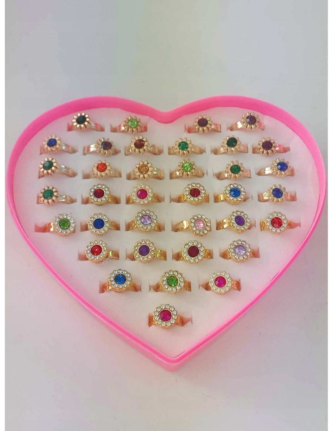 Zestaw 36 pierścionków z błyszczącymi kolorowymi oczkami, zachwyci małą damę. Każda dziewczynka pokocha ten zestaw.