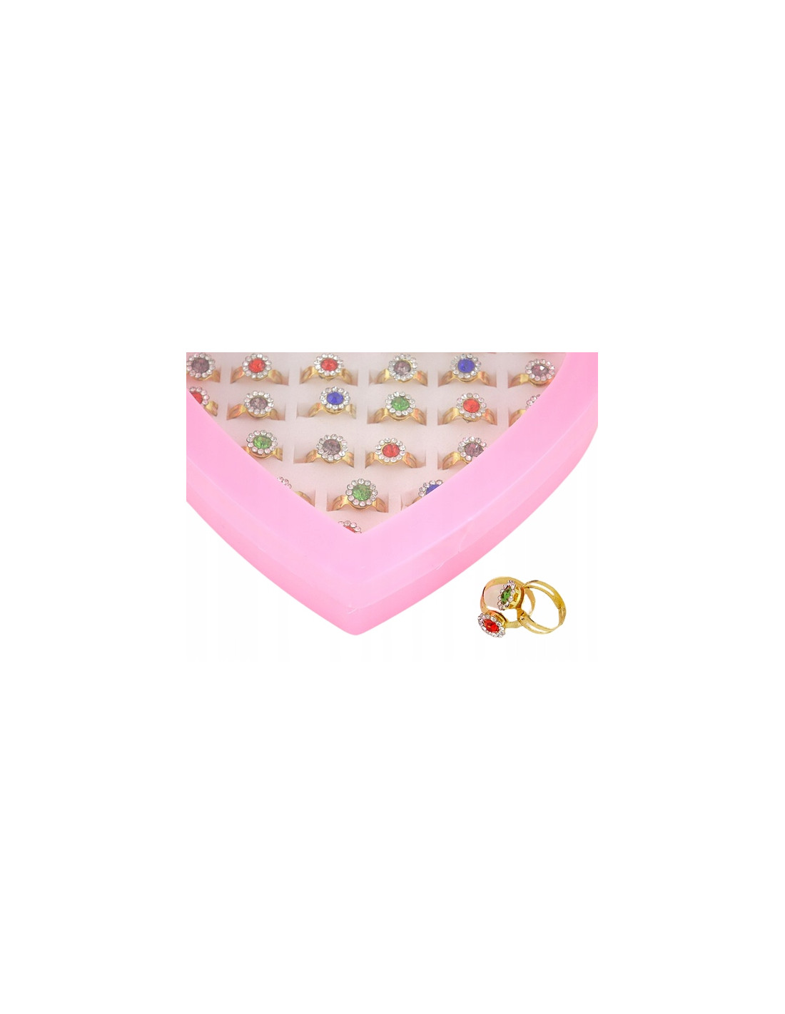 Zestaw 36 pierścionków z błyszczącymi kolorowymi oczkami, zachwyci małą damę. Każda dziewczynka pokocha ten zestaw.