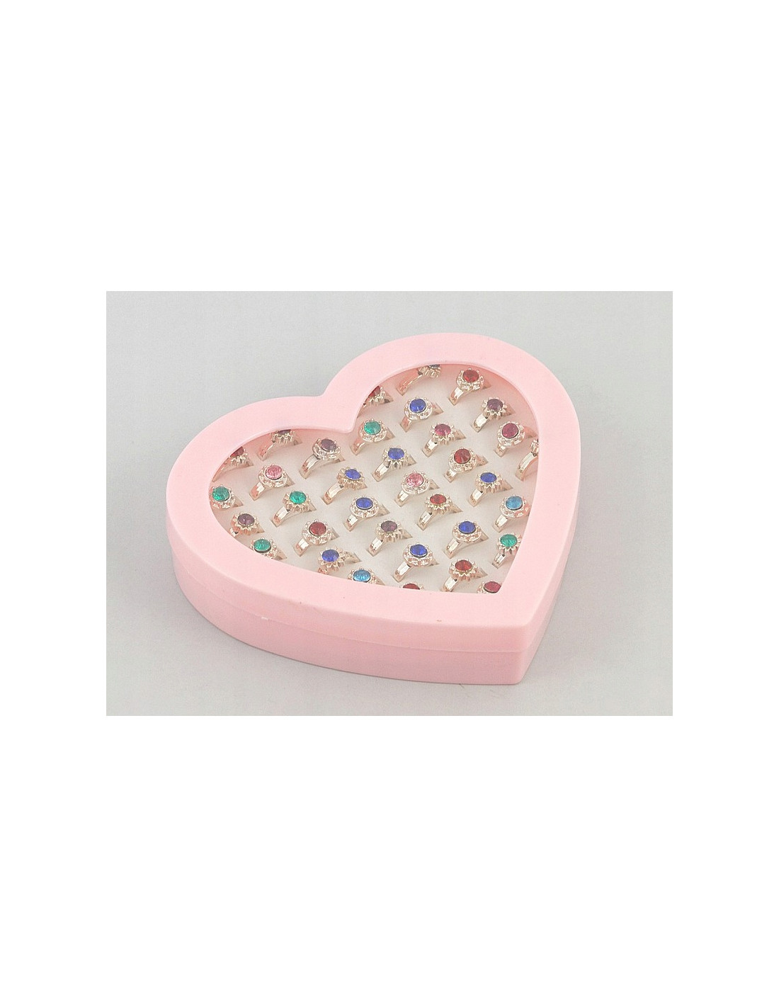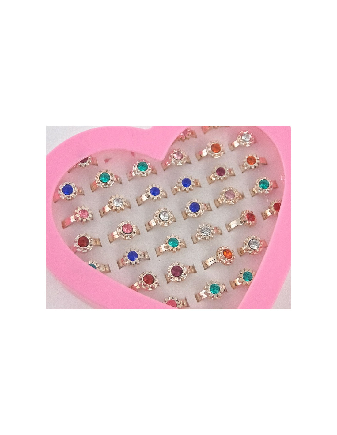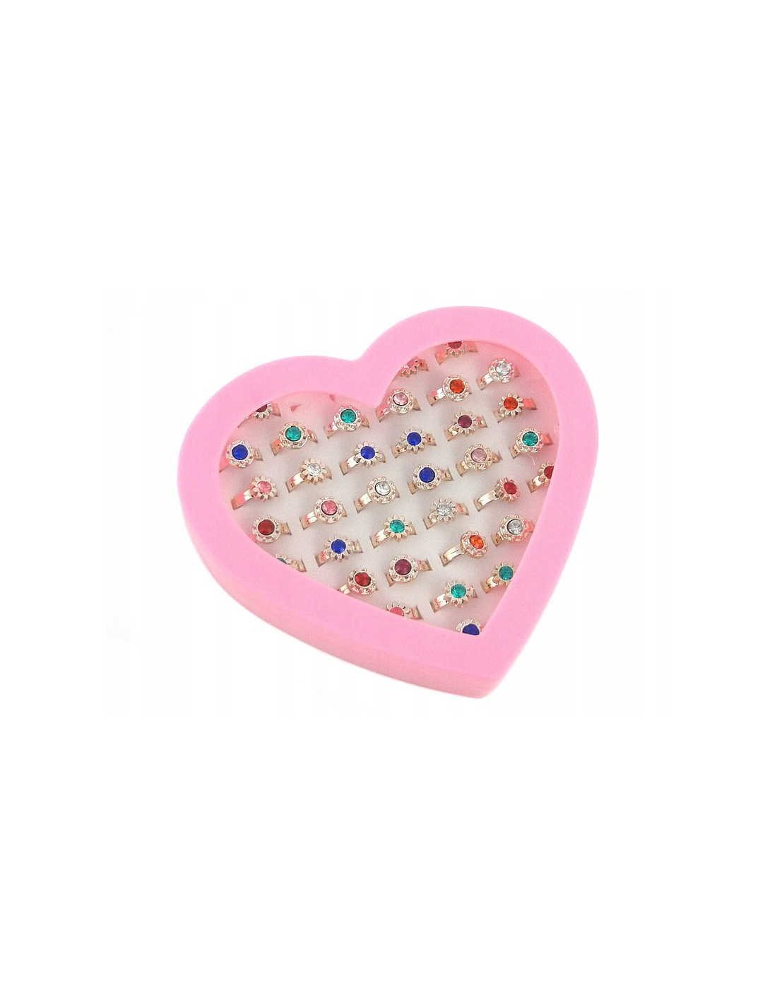 Zestaw 36 pierścionków z błyszczącymi kolorowymi oczkami, zachwyci małą damę. Każda dziewczynka pokocha ten zestaw.